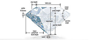 다이아몬드의 굴절로 빛이 얼마나 찬란하게 나느냐를 가장 크게 결정 짓는 요소이다. 스톤의 비율과 대칭을 종합적으로 평가하여 Excellent,Very Good, Good, Fair, Poor 다섯 등급으로 분류한다. 아무리 좋은 질의 다이아몬드라 할지라도 컷팅이 좋지 않다면 좋은 빛을 얻을 수 없으므로 다이아몬드 가치 결정에 있어 지대한 영향을 준다.